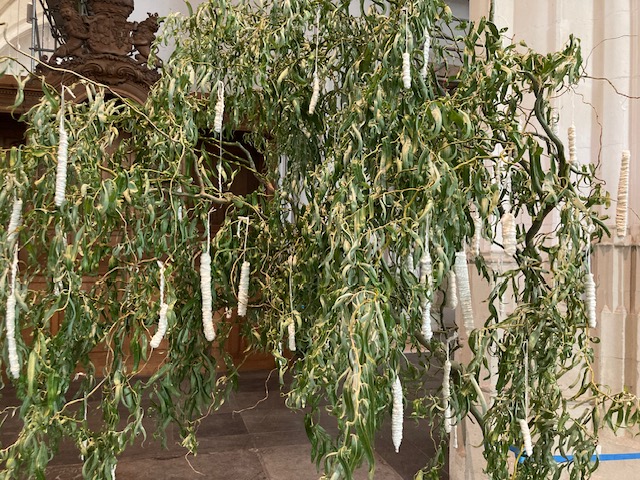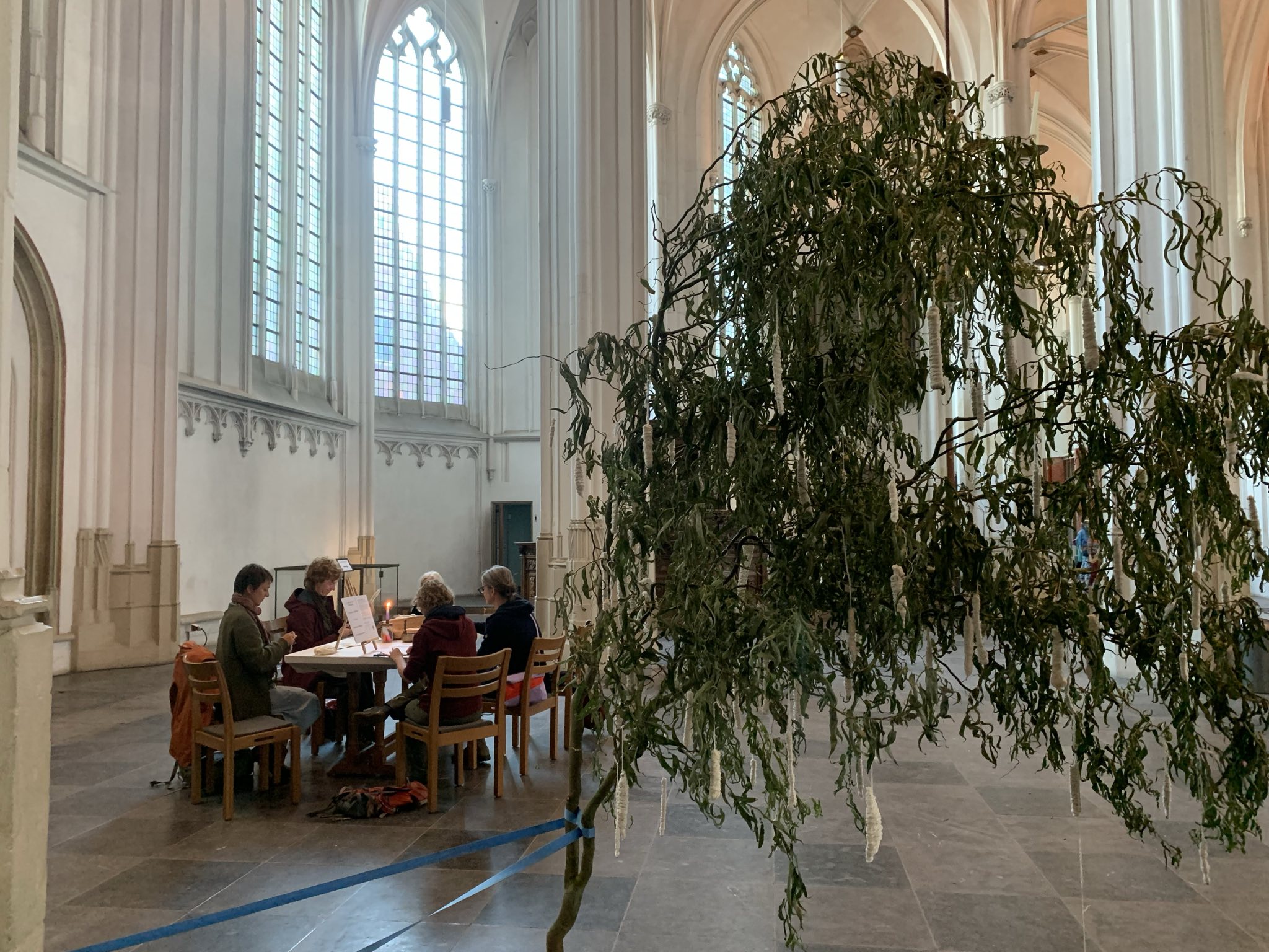 De gemaakte cocons zullen 1 keer per dag, tijdens een meditatief ritueel, opgehangen worden in de levensboom in de kerk.
